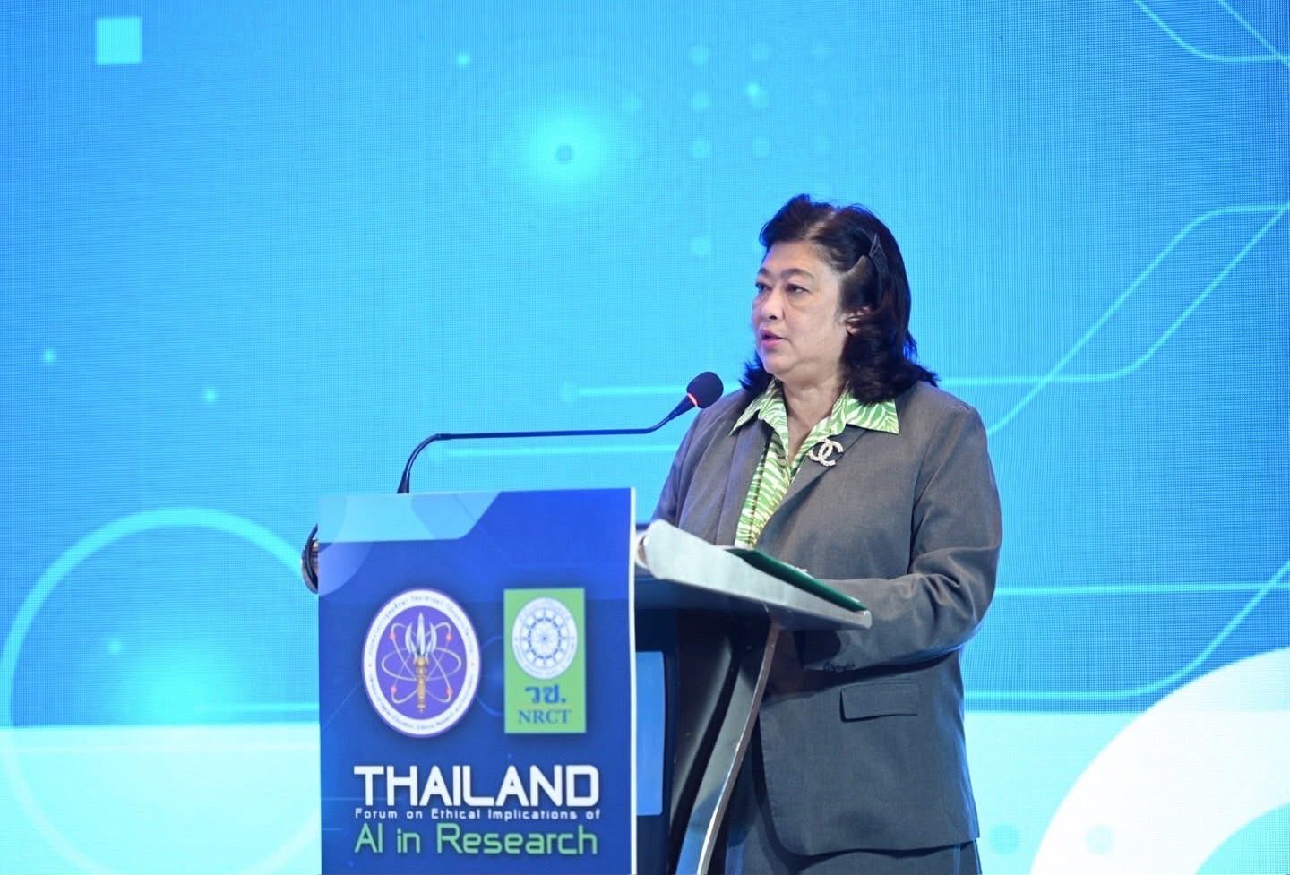 ดร.อัณณ์ณิชา โตกิจกล้าธวัฒน์ ที่ปรึกษาด้านระบบวิจัย กล่าวว่า การนำ AI มาประยุกต์ใช้ในงานวิจัยได้นำมาซึ่งข้อกังวลในหลายด้าน ทั้งในเรื่องความโปร่งใสของกระบวนการประมวลผล ความเป็นกลางของอัลกอริทึม และการคุ้มครองข้อมูลส่วนบุคคล จึงมีความจำเป็นอย่างยิ่งที่จะต้องกำหนดแนวทางการใช้ AI ที่มีความชัดเจน โปร่งใส และมีความรับผิดชอบ เพื่อยกระดับมาตรฐานจริยธรรมการวิจัยให้สอดคล้องกับหลักสากล การประชุมเสวนาครั้งนี้จึงนับเป็นเวทีสำคัญในการอภิปรายถึงความท้าทายที่เกิดขึ้น พร้อมทั้งแลกเปลี่ยนความคิดเห็นเพื่อร่วมกันกำหนดบรรทัดฐานจริยธรรมในการใช้ AI ในงานวิจัย อันจะเป็นแนวทางสำคัญให้นักวิจัยสามารถใช้ AI ได้อย่างมีจริยธรรมและเกิดประโยชน์สูงสุดต่อสังคม