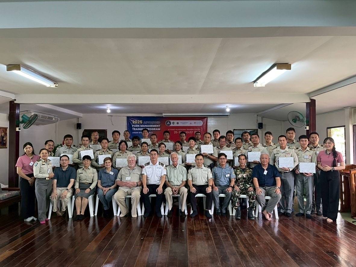และในวันที่ 30 สิงหาคม 2568 วันสุดท้ายของการอบรม ทางโครงการได้รับเกียรติจาก คุณอรรถพล เจริญชันษา อธิบดีกรมอุทยานแห่งชาติ สัตว์ป่า และพันธุ์พืช เดินทางมาร่วมรับฟังรายงานสรุปผล การมอบประกาศนียบัตร และ "เข็มผู้นำเพื่อการเปลี่ยนแปลง" พร้อมกล่าวโอวาทอันทรงคุณค่า เพื่อเป็นการสร้างแรงบันดาลใจและกำลังใจให้แก่ผู้เข้าอบรมทุกคน”
