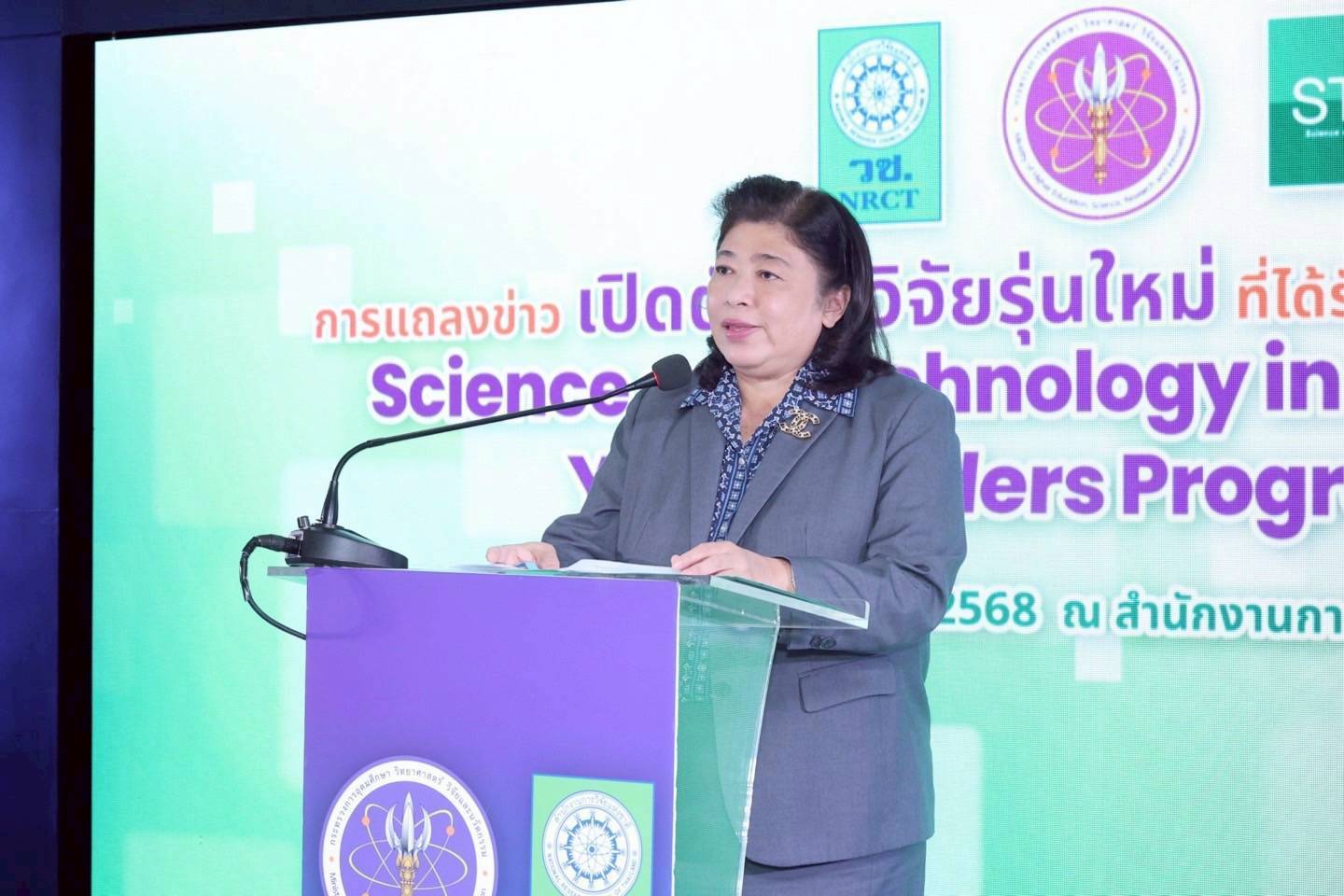 วันที่ 22 กันยายน พ.ศ. 2568 สำนักงานการวิจัยแห่งชาติ(วช.) กระทรวงการอุดมศึกษา วิทยาศาสตร์ วิจัยและนวัตกรรม จัดงานแถลงข่าวเปิดตัวนักวิจัยรุ่นใหม่ที่ได้รับการคัดเลือกจาก วช. เข้าร่วมงาน STS forum 2025 “Science and Technology in Society Forum Young Leaders Program 2025” โดยมี ดร.วิภารัตน์ ดีอ่อง ผู้อำนวยการสำนักงานการวิจัยแห่งชาติ เป็นประธานในการแถลงข่าว พร้อมด้วยคณะนักวิจัยและคณะผู้บริหาร วช. เข้าร่วมกิจกรรม ณ ศูนย์ข้อมูลสารสนเทศกลางด้านวิทยาศาสตร์ วิจัยและนวัตกรรมของประเทศ อาคาร วช. 8