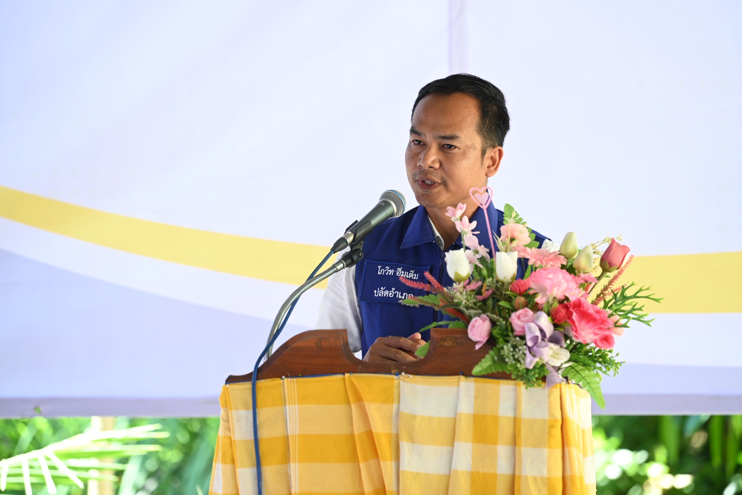 นายโกวิท อิ่มเต็ม ปลัดอำเภอโพนสวรรค์ กล่าวขอบคุณ วช. สำหรับการส่งเสริมและสนับสนุนการวิจัยและนวัตกรรม โดยการส่งมอบนวัตกรรมในครั้งนี้เป็นประโยชน์ต่อเกษตรกรในพื้นที่จังหวัดนครพนมเป็นอย่างยิ่ง พร้อมกับ เป็นชุมชนต้นแบบที่ยังสามารถขยายผลความรู้และนวัตกรรมให้ประชาชนในพื้นที่ใกล้เคียงนำไปใช้ประโยชน์ได้อย่างคุ้มค่า ทั้งนี้ นวัตกรรมดังกล่าวจะเป็นกลไกสำคัญในการขับเคลื่อนการพัฒนาประเทศอย่างยั่งยืน ผ่านการถ่ายทอดองค์ความรู้จากการใช้งานจริงสู่ประชาชนในวงกว้าง