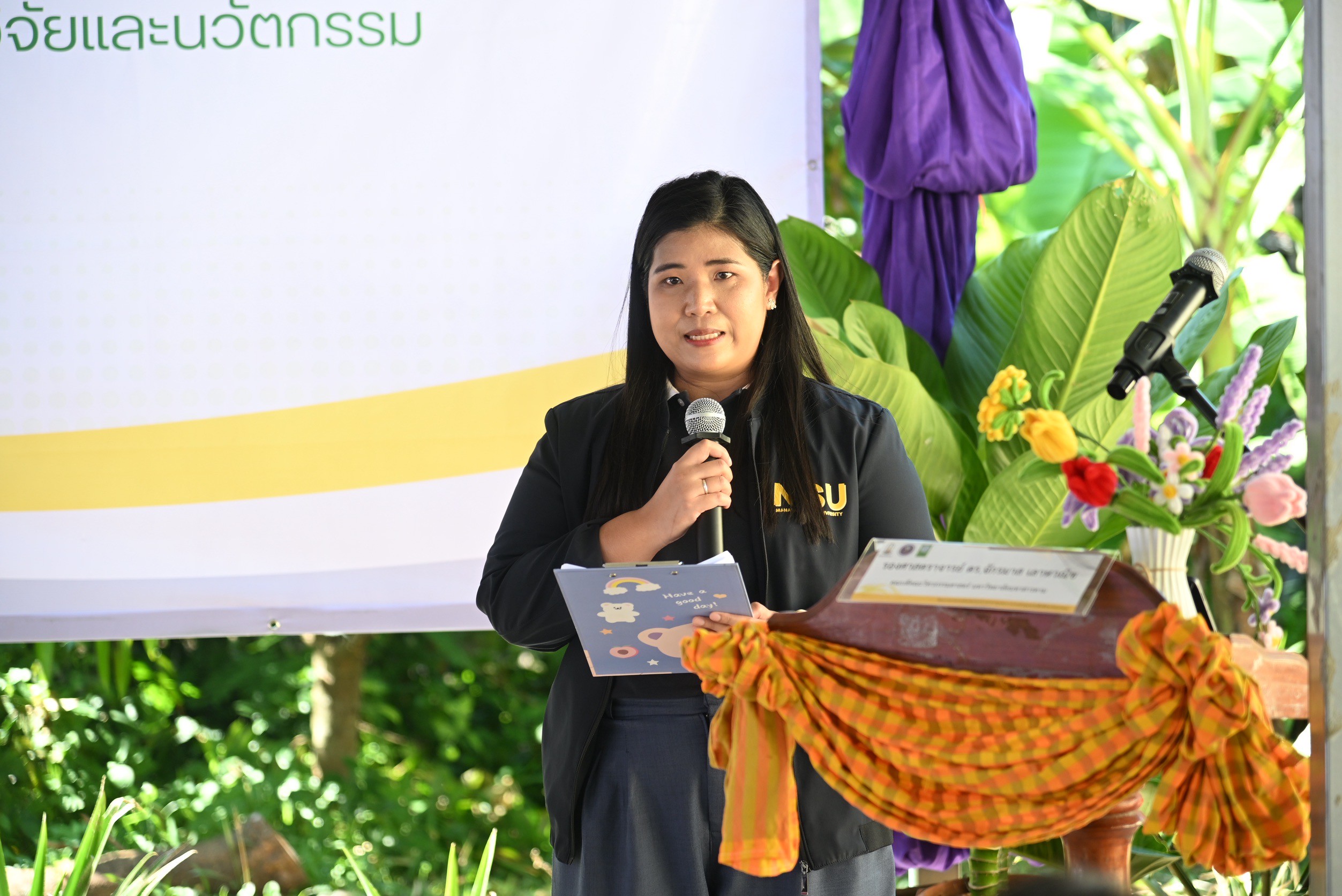 ดร.วิภารัตน์ ดีอ่อง ผู้อำนวยการสำนักงานการวิจัยแห่ง กล่าวว่า โครงการ “การยกระดับผลิตภัณฑ์เกษตรแปรรูปครบวงจรระดับชุมชนในพื้นที่จังหวัดนครพนม” เป็นสร้างชุมชนต้นแบบที่ยกระดับประสิทธิภาพการผลิต ด้วยวิจัยและนวัตกรรมตามโจทย์ความต้องการของพื้นที่ โดยนำเทคโนโลยีและนวัตกรรมมาใช้ในการพัฒนาผลิตภัณฑ์การเกษตรอย่างครบวงจร ทั้งในด้านเทคนิค วิธีการ และอุปกรณ์ ตลอดจนการจัดอบรมส่งเสริมความรู้เพื่อสร้างทักษะและความเข้าใจแก่ผู้มีส่วนเกี่ยวข้องในวิสาหกิจชุมชน ซึ่งจะนำไปสู่การแก้ไขปัญหาด้านผลผลิตทางการเกษตรได้อย่างเป็นรูปธรรม สร้างรายได้ เพิ่มโอกาสทางเศรษฐกิจฐานราก และเสริมสร้างความเข้มแข็งของชุมชนให้มีความยั่งยืน