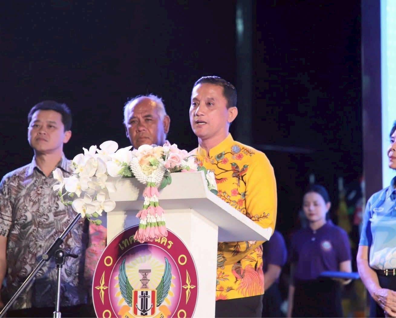นายหัสชัย เรืองนุ้ย รองนายกเทศมนตรีนครสุราษฎร์ธานี ในนามของท่านนายกเทศมนตรีเมืองสุราษฎร์ธานี รู้สึกเป็นเกียรติและมีความยินดีเป็นอย่างยิ่งที่ได้ต้อนรับทุกท่านสู่งานประเพณีชักพระและแข่งเรือยาว ซึ่งเป็นวัฒนธรรมอันดีงามของจังหวัดสุราษฎร์ธานี เทศบาลเมืองสุราษฎร์ธานี ในฐานะเจ้าภาพการจัดกิจกรรมในค่ำคืนนี้ มีความตั้งใจอย่างยิ่งที่จะสร้างงานประเพณีของเราให้ก้าวไปอีกขั้น เพื่อสร้างความประทับใจและมอบประสบการณ์ใหม่ ๆ ให้กับทั้งพี่น้องชาวสุราษฎร์ธานีและนักท่องเที่ยว การสืบทอดภูมิปัญญาอันล้ำค่าของชาวสุราษฎร์ธานีเป็นการแสดงความพร้อมที่จะสืบสานและเผยแพร่มรดกทางวัฒนธรรม ให้คนรุ่นใหม่ได้ภาคภูมิใจและยังเป็นการต่อยอดทางเศรษฐกิจในท้องถิ่น การสนับสนุนจาก วช. ที่ทำให้ช่วงค่ำคืน มีความสวยงาม และมีเอกลักษณ์ของการท่องเที่ยวของจังหวัดสุราษฎร์ธานี และทุกหน่วยงานที่มีส่วนร่วมในการจัดกิจกรรมในครั้งนี้