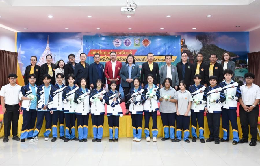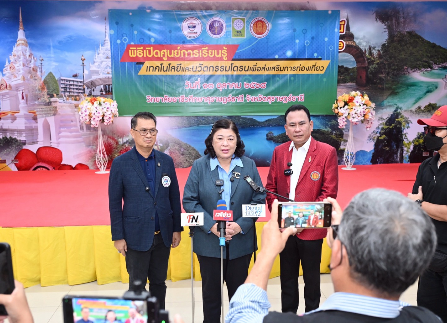 วันที่ 13 ตุลาคม 2568 สำนักงานการวิจัยแห่งชาติ(วช.) กระทรวงการอุดมศึกษา วิทยาศาสตร์ วิจัยและนวัตกรรม โดย ดร.วิภารัตน์ ดีอ่อง ผู้อำนวยการสำนักงานการวิจัยแห่งชาติ เป็นประธานเปิด “ศูนย์การเรียนรู้เทคโนโลยีและนวัตกรรมโดรนเพื่อส่งเสริมการท่องเที่ยว” โดยมี อาจารย์พงษ์ศักดิ์ นุ้ยเจริญ ผู้อำนวยการวิทยาลัยอาชีวศึกษาสุราษฎร์ธานี ให้การต้อนรับ พร้อมด้วยผู้ทรงคุณวุฒิจาก วช. และ อาจารย์พิศิษฐ์ มิตรเกื้อกูล นายกสมาคมกีฬาเครื่องบินจำลองและวิทยุบังคับ ตลอดจนคณะผู้บริหาร สื่อมวลชน และแขกผู้มีเกียรติ เข้าร่วมในพิธี ณ วิทยาลัยอาชีวศึกษาสุราษฎร์ธานี จังหวัดสุราษฎร์ธานี