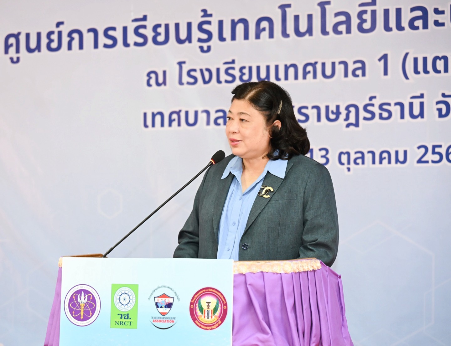 กล่าวว่า ในนามของ โรงเรียนเทศบาล 1 สุราษฎร์ธานี (แตงอ่อนเผดิมวิทยา) และตัวแทนสถานศึกษาในพื้นที่จังหวัดสุราษฎร์ธานี ขอขอบคุณ วช. ที่ได้เล็งเห็นความสำคัญและให้เกียรติเลือกโรงเรียนของเราเป็นพื้นที่ในการจัดตั้ง “ศูนย์การเรียนรู้เทคโนโลยีและนวัตกรรมโดรน ต้นแบบภาคใต้” ศูนย์แห่งนี้ถือเป็นอีกก้าวสำคัญของการยกระดับการศึกษาในระดับท้องถิ่นที่จะเปิดโอกาสให้เยาวชนของเราได้เรียนรู้เทคโนโลยีที่ทันสมัยได้ลงมือปฏิบัติจริง และสามารถต่อยอดไปสู่การสร้างนวัตกรรมในอนาคต