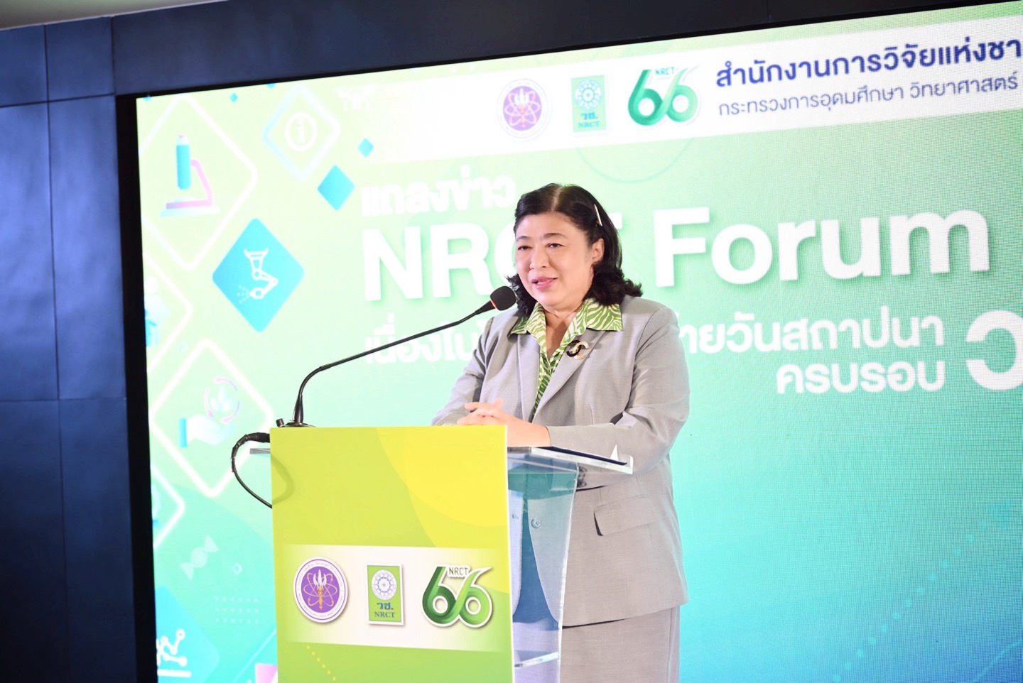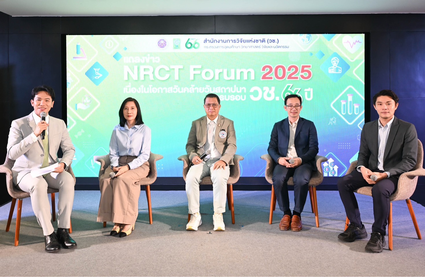 วันที่ 20 ตุลาคม 2568 สำนักงานการวิจัยแห่งชาติ(วช.) กระทรวงการอุดมศึกษา วิทยาศาสตร์ วิจัยและนวัตกรรม จัดแถลงข่าวการจัดงาน “NRCT Forum 2025” เนื่องในโอกาสวันคล้ายวันสถาปนา วช. ครบรอบ 66 ปี โดย ดร.วิภารัตน์ ดีอ่อง ผู้อำนวยการสำนักงานการวิจัยแห่งชาติ เป็นประธานในพิธี ณ ศูนย์ข้อมูลสารสนเทศกลางด้านวิทยาศาสตร์ วิจัยและนวัตกรรมของประเทศ วช.