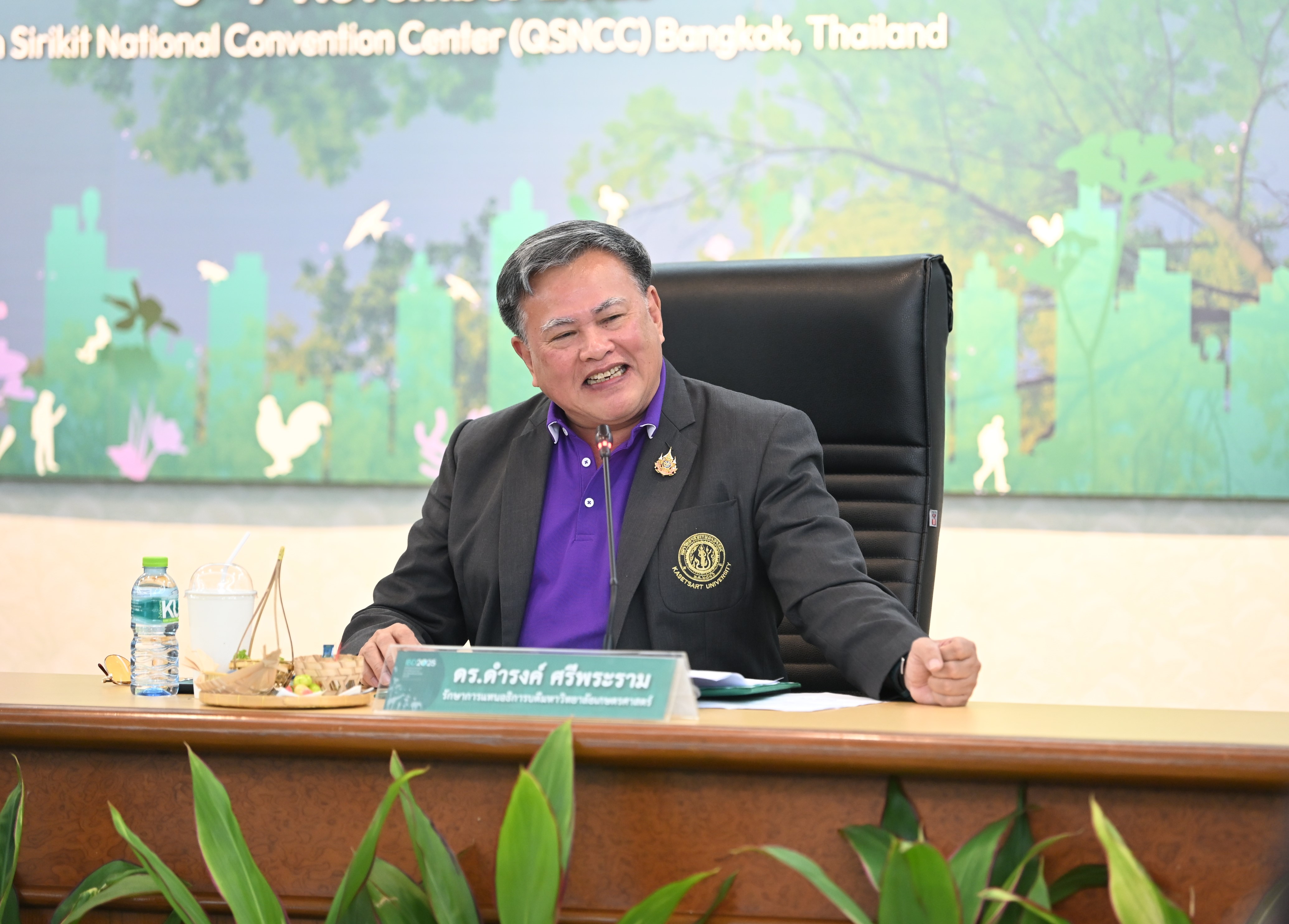 ดร.ดำรงค์ ศรีพระราม รักษาการแทนอธิการบดีมหาวิทยาลัยเกษตรศาสตร์ กล่าวถึงการมีส่วนร่วมและความร่วมมือระหว่าง มก. กับ วช. และหน่วยงานเครือข่ายระดับชาติและนานาชาติ โดย มก. ได้มุ่งนำองค์ความรู้ งานวิจัย และการเรียนการสอนด้านความหลากหลายทางชีวภาพมาผนึกกำลังกับทุกภาคส่วน เพื่อสร้างความเข้าใจและความร่วมมือในทุกมิติ ทั้งระดับชาติและนานาชาติ พร้อมกล่าวถึงนิทรรศการเฉลิมพระเกียรติ 70 พรรษา สมเด็จพระกนิษฐาธิราชเจ้า กรมสมเด็จพระเทพรัตนราชสุดาฯ สยามบรมราชกุมารี ที่ มก. ร่วมกับ วช. จัดขึ้นภายใต้แนวคิด “มรรคาแห่งความสมดุล : วัฏจักรความหลากหลายทางชีวภาพกับการอนุรักษ์อย่างยั่งยืน” โดยหวังเป็นอย่างยิ่งว่าการประชุมในครั้งนี้จะทำให้ประชาชนได้เห็นถึงความสำคัญของทรัพยากรธรรมชาติและเรียนรู้ที่จะใช้ทรัพยากรอย่างรู้คุณค่าเพื่อการอนุรักษ์ที่ยั่งยืน