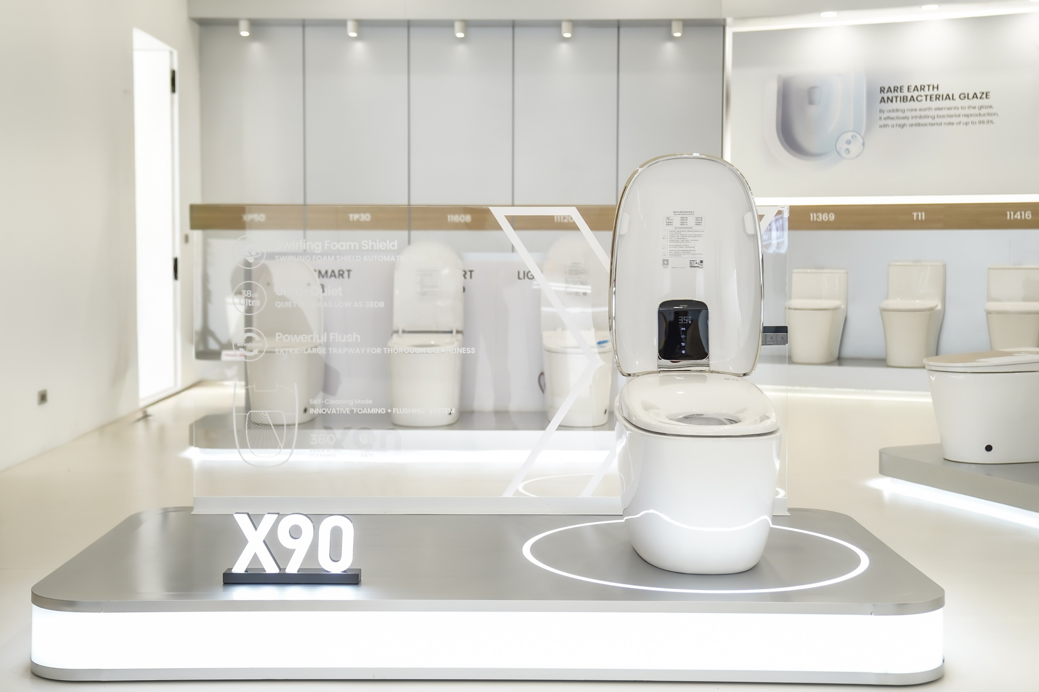 โดยสินค้าเรือธง สุขภัณฑ์อัจฉริยะรุ่น X-Series พร้อมมอบประสบการณ์เหนือระดับ ผ่านการผสานนวัตกรรมทั้งด้านความเงียบ ความสะอาด และความชาญฉลาดไว้อย่างสมบูรณ์แบบ โดดเด่นด้วยเทคโนโลยี Silent Flushing ซึ่งทำงานเงียบในระดับเสียงเงียบสุด 38 เดซิเบล (เงียบราวกับอยู่ในห้องสมุด) พร้อมสุขอนามัยสูงสุดจากฝารองนั่งมาตรฐาน SIAA ที่ต้านแบคทีเรียได้มากกว่า 99% ระบบกำจัดกลิ่นด้วยสารแพลทินัมที่ขจัดกลิ่นไม่พึงประสงค์ได้อย่างมีประสิทธิภาพกว่า 99% และเทคโนโลยีการชำระล้างแบบใหม่ Flip-Flush ซึ่งเป็นนวัตกรรมปฏิวัติวงการสุขภัณฑ์อัจฉริยะรายเดียวในโลก