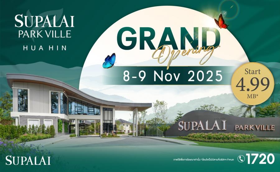 ศุภาลัยบุกหัวหินต่อไม่พัก! เปิดตัวโครงการใหม่ “ศุภาลัย พาร์ควิลล์ หัวหิน”บ้านเดี่ยวขนาดใหญ่ ใจกลางเมือง พร้อมข้อเสนอพิเศษในงาน Grand Opening 8–9 พ.ย. นี้ เริ่มเพียง 4.99 ล้านบาท