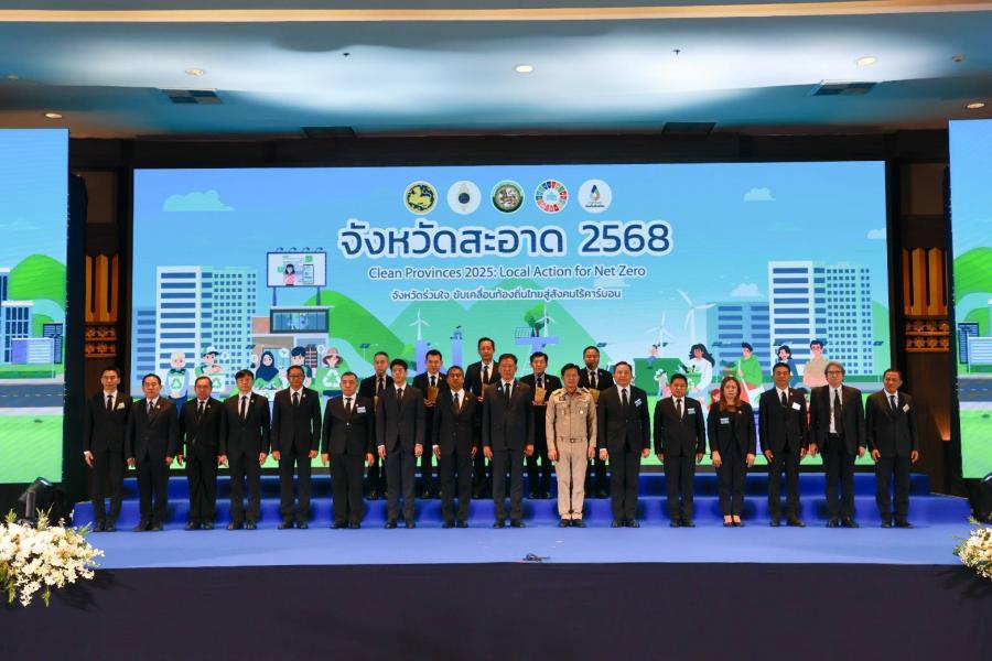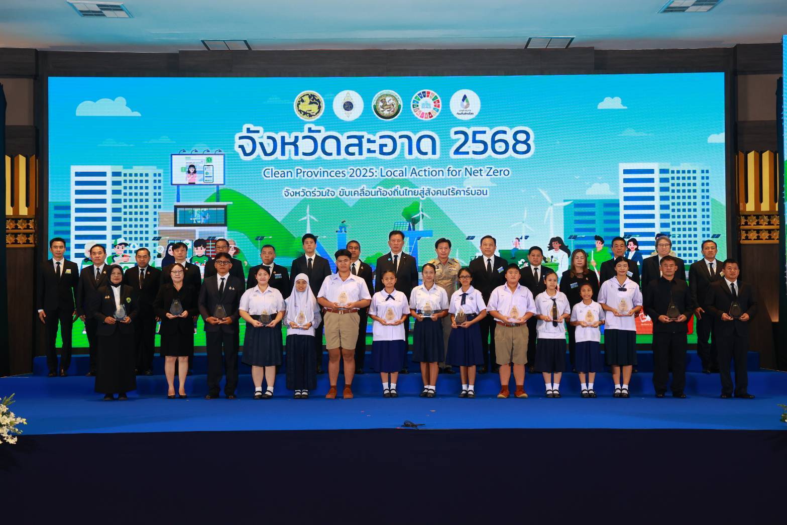 สำหรับพิธีฯ ในวันนี้ นายศักดิ์ดา ได้เป็นประธานมอบโล่รางวัลการจัดการขยะมูลฝอยชุมชน “จังหวัดสะอาด” ประจำปี พ.ศ. 2568 รวม 20 รางวัล ประเภทกลุ่มจังหวัดต้นแบบการจัดการขยะมูลฝอยชุมชนยั่งยืน (กลุ่มต้นแบบ) รางวัลชนะเลิศ ได้แก่ จังหวัดสตูล ประเภทกลุ่มการจัดการขยะมูลฝอยชุมชน “จังหวัดสะอาด” (กลุ่มทั่วไป) กลุ่มจังหวัดขนาดใหญ่ รางวัลชนะเลิศ ได้แก่ จังหวัดเชียงใหม่ กลุ่มจังหวัดขนาดกลาง รางวัลชนะเลิศ ได้แก่ จังหวัดหนองคาย และกลุ่มจังหวัดขนาดเล็ก รางวัลชนะเลิศ ได้แก่ จังหวัดอำนาจเจริญ