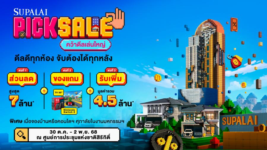 บมจ.ศุภาลัย ชวนคนอยากมีบ้าน “อัปเลเวลความคุ้ม” กับแคมเปญล่าสุด “SUPALAI PICK SALE คว้าดีลเล่นใหญ่!” ในงานมหกรรมบ้านและคอนโด ครั้งที่ 48 ณ ศูนย์การประชุมแห่งชาติสิริกิติ์ Hall 5 ชั้น LG ระหว่างวันที่ 30 ต.ค.–2 พ.ย. 2568 ยกขบวนโครงการคุณภาพทั่วประเทศ ทั้งบ้านเดี่ยว ทาวน์โฮม และคอนโดมิเนียมพร้อมอยู่ ให้ทุกคนได้ “คว้า” ยูนิตที่ใช่ด้วยดีลที่กล้าจัดและปิดจบในงานเดียว ไฮไลต์คุ้มจัดเต็ม รับส่วนลดสูงสุดถึง 7 ล้านบาท* พร้อมของแถม TV SAMSUNG ขนาด 50 นิ้ว คู่กับ Nintendo Switch 2* และสิทธิ์รับของแถมเพิ่มรวมมูลค่ากว่า 4.5 ล้านบาท* แถมยัง ฟรีค่าใช้จ่ายวันโอนฯ* ให้เริ่มเป็นเจ้าของได้สบายใจ งานเดียวครบ จบดีลใหญ่ตั้งแต่ก้าวแรก