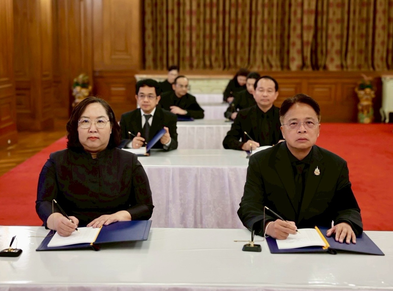 ออมสิน ถวายพวงมาลัย และลงนามถวายความอาลัย แด่สมเด็จพระนางเจ้าสิริกิติ์ พระบรมราชินีนาถ พระบรมราชชนนีพันปีหลวง
