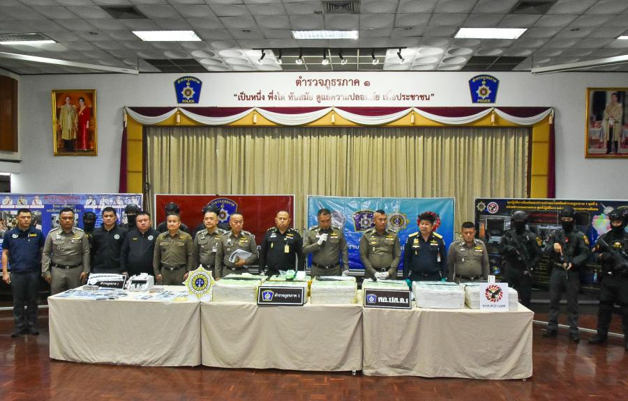ตำรวจภูธรภาค 1 แถลงข่าวการจับกุมคดียาเสพติดรายสำคัญ ทำลายเครือข่ายยาเสพติด “นักขนยาเสพติดตะวันออก”