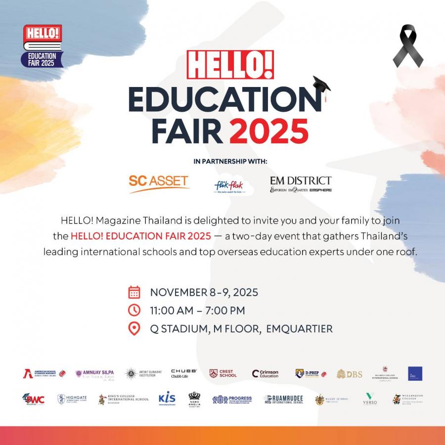 อย่าพลาด มาค้นหาโรงเรียนนานาชาติที่ใช่ และเลือกเส้นทางการศึกษาต่างประเทศที่ตอบโจทย์ที่สุดใน “HELLO! Education Fair 2025” งานแนะแนวการศึกษานานาชาติครั้งยิ่งใหญ่แห่งปี ในวันเสาร์และอาทิตย์ที่ 8-9 พฤศจิกายน 2568 เวลา 11.00-19.00 น. ณ Q Stadium ชั้น M เอ็มควอเทียร์ งานนี้ เข้างานฟรี! ไม่มีค่าใช้จ่าย ติดตามรายละเอียดเพิ่มเติมได้ที่ Facebook: Hello! Thailand