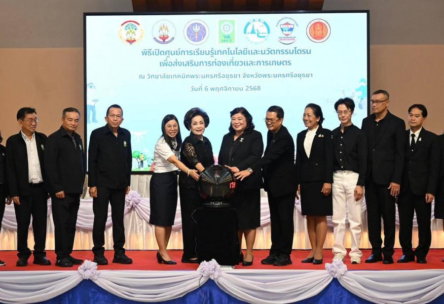 วันที่ 6 พฤศจิกายน 2568 สำนักงานการวิจัยแห่งชาติ(วช.) กระทรวงการอุดมศึกษา วิทยาศาสตร์ วิจัยและนวัตกรรม โดย ดร.วิภารัตน์ ดีอ่อง ผู้อำนวยการสำนักงานการวิจัยแห่งชาติ เป็นประธานในพิธีเปิด “ศูนย์การเรียนรู้เทคโนโลยีและนวัตกรรมโดรนเพื่อส่งเสริมการท่องเที่ยวและการเกษตร” โดยมี นางสมทรง พันธุ์เจริญวรกุล นายกองค์การบริหารส่วนจังหวัดพระนครศรีอยุธยา ร่วมในพิธีเปิด พร้อมด้วยนางสาวมยุรี ศรีระบุตร ผู้อำนวยการวิทยาลัยเทคนิคพระนครศรีอยุธยา นางสาวนปภา สังฆโสภณ รองผู้อำนวยการการท่องเที่ยวแห่งประเทศไทยสำนักงานพระนครศรีอยุธยา อาจารย์พิศิษฐ์ มิตรเกื้อกูล นายกสมาคมกีฬาเครื่องบินจำลองและวิทยุบังคับ พร้อมด้วยคณะผู้บริหาร ภาคีเครือข่าย สื่อมวลชน และแขกผู้มีเกียรติ เข้าร่วมในพิธี ณ วิทยาลัยเทคนิคพระนครศรีอยุธยา จังหวัดพระนครศรีอยุธยา