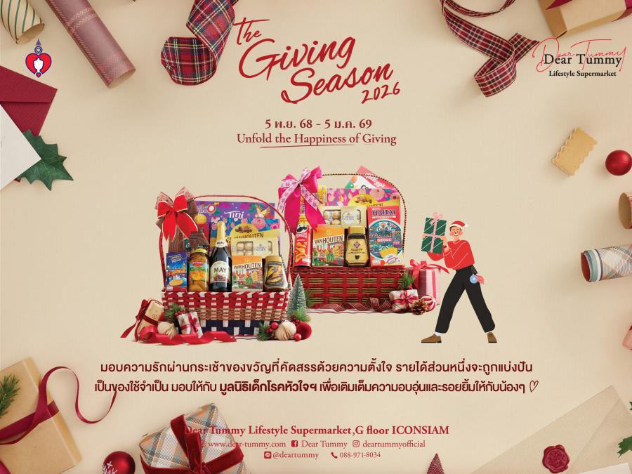 เมื่อฤดูกาลแห่งการส่งความสุขและความปรารถนาดีเวียนมาถึง เดียร์ทัมมี่ ไลฟ์สไตล์ซูเปอร์มาร์เก็ต (Dear Tummy Lifestyle Supermarket) ที่มุ่งมั่นคัดสรรสิ่งที่ดีที่สุดให้กับลูกค้า ชวนทุกคนมาต้อนรับเทศกาลแห่งการเฉลิมฉลองส่งท้ายปี กับแคมเปญ “The Giving Season 2026 : Unfold the Happiness of Giving” เลือกของขวัญจากใจ เติมเต็มความสุขจากการเป็นผู้ให้ ด้วยกระเช้าของขวัญคอลเลกชันพิเศษ และสารพันสินค้าหลากสไตล์ที่คัดสรรมาอย่างพิถีพิถัน เพื่อให้เลือกเป็นของขวัญแทนใจ พร้อมโปรโมชั่นสุดพิเศษ กับกระเป๋าสุดสร้างสรรค์โดยศิลปินชื่อนักวาดภาพประกอบดัง Viput A. ตั้งแต่วันนี้ถึงวันที่ 5 มกราคม 2569 ณ เดียร์ทัมมี่ ไลฟ์สไตล์ซูเปอร์มาร์เก็ต ชั้น G ไอคอนสยาม