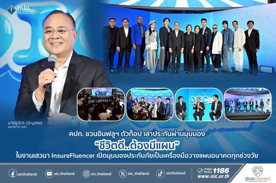 โดยมีนายชูฉัตร ประมูลผล เลขาธิการ คปภ. ร่วมพูดคุยกับ Influencer ทั้ง 6 ท่าน ถ่ายทอดแนวคิดและประสบการณ์ด้านการวางแผนชีวิตในหลากหลายมิติที่เกี่ยวข้องกับประกันภัยอย่างรอบด้าน ได้แก่ ป้าตือ–สมบัษร ถิระสาโรช ถ่ายทอดแนวทางการวางแผนชีวิตวัยเกษียณ และสิทธิประกันภัยที่ผู้สูงอายุต้องรู้ ตลอดจนการใช้ประกันชีวิตและประกัน โรคร้ายแรงเป็นเครื่องมือสร้างความมั่นคง หมอเจี๊ยบ–ลลนา ก้องธรนินทร์ ให้ความรู้ด้านสุขภาพ โดยเฉพาะโรคมะเร็งซึ่งเป็นโรคร้ายแรงอันดับหนึ่ง พร้อมประสบการณ์ส่วนตัวเกี่ยวกับสุขภาพ การวางแผนประกันสุขภาพ ประกันทรัพย์สิน ประกันอัคคีภัย และประกันภัยสัตว์เลี้ยง คุณต้นหอม–ศกุนตลา เทียนไพโรจน์ และ คุณรัศมีแข ฟ้าเกื้อล้น ร่วมแลกเปลี่ยนประสบการณ์การใช้ประกันภัยอุบัติเหตุสำหรับผู้ที่มีไลฟ์สไตล์ลุยกิจกรรม รวมถึงการวางแผนประกันภัยสำหรับเด็กและการส่งต่อมรดกเพื่อดูแลครอบครัวในอนาคต คุณพอล–ภัทรพล ศิลปาจารย์ นำเสนอแนวคิดการวางแผนทางการเงินร่วมกับประกันภัย เช่น ประกันชีวิตบำนาญ และประกันชีวิตควบการลงทุน เพื่อสร้างความมั่นคงในระยะยาว คุณนิว–ฐิติภูมิ เตชะอภัยคุณ ถ่ายทอดแนวคิดประกันภัยยุคดิจิทัล การประกันภัยไซเบอร์ และการประกันภัยรถยนต์ไฟฟ้า ดำเนินรายการเสวนา โดย คุณโบ ธนากร ชินกูล ซึ่งมีบทบาทสำคัญในการเชื่อมโยงประเด็นด้านประกันภัยให้เข้าใจง่ายและเข้าถึงผู้ฟังทุกช่วงวัย โดยช่วงท้ายของการเสวนา เลขาธิการ คปภ. ได้สรุปประเด็นสำคัญจากทุกมุมมองที่ Influencer ทั้ง 6 ท่านได้ร่วมถ่ายทอด พร้อมเน้นย้ำว่า “การวางแผนชีวิตโดยใช้ประกันภัยให้ถูกต้อง เหมาะสม และทันยุคสมัย” คือกุญแจสำคัญ ในการสร้างความมั่นคงให้ประชาชนในทุกช่วงวัย