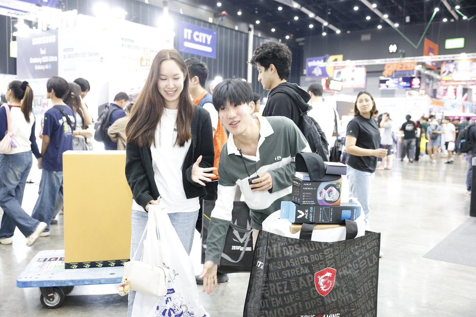 “สำหรับสัดส่วนสินค้าขายดีภายในงาน ประกอบด้วย Laptop / โน้ตบุ๊ก พุ่งสูงถึง 54% รองลงมาเป็นสินค้ากลุ่มสมาร์ทโฟน 19% GPU / การ์ดจอ 12% คอมพิวเตอร์ประกอบ (ComSet / DIY) 9% มอนิเตอร์ 6% โดยโน้ตบุ๊กและอุปกรณ์ที่รองรับการทำงานด้าน AI ยังคงครองความนิยมอันดับหนึ่ง เนื่องจากในงานครั้งนี้มีวางจำหน่ายครบทุกรุ่นและมีจำนวนเพียงพอต่อความต้องการของผู้ซื้อ ขณะที่อุปกรณ์กลุ่มการ์ดจอและแรมมีความต้องการเพิ่มขึ้นเนื่องจากราคามีแนวโน้มปรับสูงขึ้นในปีหน้า ทำให้ผู้บริโภคจึงตัดสินใจซื้อ