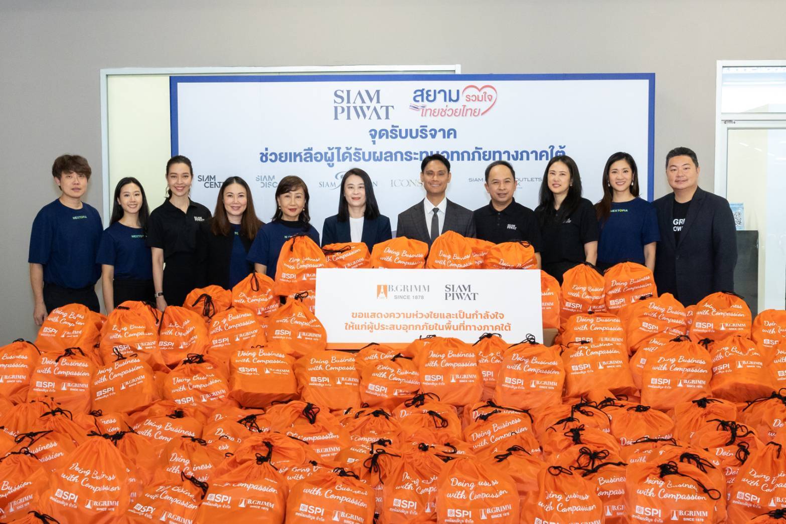 นอกจากนี้ ยังได้มีการส่งมอบถุงยังชีพ ณ จุดรับบริจาคของโครงการ “สยามร่วมใจ ไทยช่วยไทย” ซึ่งเป็นโครงการของกลุ่มบริษัทสยามพิวรรธน์ที่จัดตั้งขึ้นเพื่อช่วยเหลือผู้ประสบภัยพิบัติทั่วประเทศ โดยเฉพาะในพื้นที่ที่ประสบเหตุอุทกภัย