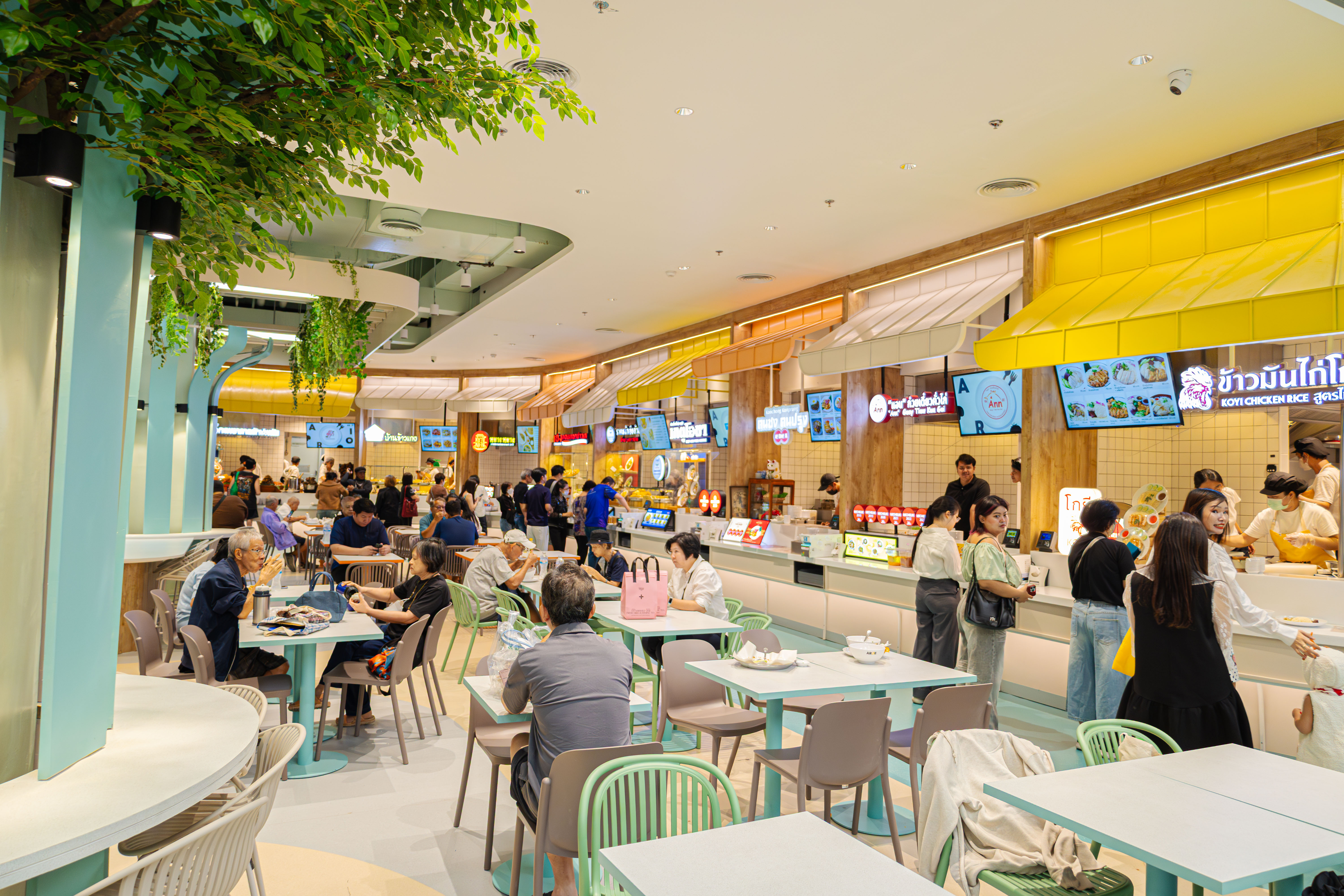 ภายในรวมร้านอาหารชื่อดังจากทั่วประเทศไทยมาให้เลือกลิ้มชิมรสถึง 37 ร้าน ครบครันทั้งอาหารคาว ของหวาน ขนม และเครื่องดื่ม หลากหลายประเภท ตั้งแต่ร้านมิชลิน จนถึงสตรีตฟู้ดชื่อดัง อาทิ “ข้าวมันไก่โกยี” ข้าวมันไก่ไหหลำชื่อดังจากเชียงใหม่ การันตีความอร่อยโดยมิชลินไกด์ 3 ปีซ้อน “แอนก๋วยเตี๋ยวคั่วไก่” กับสูตรเตาถ่าน ต้นตำรับยาวนานกว่า 70 ปี มีมิชลินการันตีถึง 6 ปีซ้อน “คนชง คนปรุง” ร้านอาหารไทย-จีนที่ครองใจนักชิม และถูกแนะนำในมิชลินไกด์ถึง 3 ปี มีเมนูเด่นเป็น ข้าวไข่ขยี้น้าปลาไก่ทอดราดซอสแกงใต้ และข้าวกระเพราไก่กรอบ “เกตุโอชา” ก๋วยเตี๋ยวเนื้อตุ๋น-หมูตุ๋น ต้นตำรับความอร่อยที่มีประวัติยาวนานกว่า 40 ปี และยังคว้ารางวัล มิชลิน บิบ กูร์มองด์ 2 ปีซ้อน “ราดหน้าเฮียอ้วน” ร้านเก่าแก่ชื่อดังกับจุดเด่น หมูนุ่มชิ้นใหญ่ที่หมักด้วยสูตรลับ และเส้นผัดที่หอมกลิ่นกระทะอันเป็นเอกลักษณ์ “เฮงหอยทอดชาวเล” อีกหนึ่งร้านดังระดับตำนานจากภูเก็ตที่บุกมาครองใจชาวกรุงเทพฯ จนสร้างชื่อโด่งดังในหมู่นักชิม “หยางหยาง” ร้านอาหารจีนจานด่วนกับเมนูเด็ด ข้าวผัดหยางโจว และข้าวผัดหนำเลี๊ยบหมูสับ ที่ส่งตรงรสชาติต้นตำรับมาจากประเทศจีน