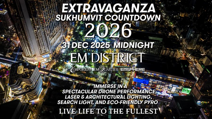 เอ็ม ดิสทริค (เอ็มโพเรียม, เอ็มควอเทียร์ และเอมสเฟียร์) ย่านการค้าและไลฟ์สไตล์ ความบันเทิงระดับโลกร่วมกับ การท่องเที่ยวแห่งประเทศไทย, กรุงเทพมหานคร และพันธมิตรภาคเอกชน อาทิ บริษัท แกรนด์ แอสเสท โฮเทลส์ แอนด์ พรอพเพอร์ตี้ จำกัด (มหาชน), โรงแรมฮอลิเดย์ อินน์ กรุงเทพ สุขุมวิท, บริษัท ภิรัชบุรี จำกัด, บริษัท เอ็กเชน ทาวเวอร์ จำกัด, บริษัท ซิตี้เรียลตี้ จำกัด, บริษัท ซิโน-ไทย เอ็นจิเนียริง แอนด์ คอนสตรัคชั่น จำกัด, บริษัท แสนสิริ จำกัด (มหาชน), บริษัท แอดวานซ์ อินโฟร์ เซอร์วิส จำกัด (มหาชน), บริษัท เมเจอร์ ซีนีเพล็กซ์ กรุ้ป จำกัด (มหาชน), โรงแรมเอส 31 สุขุมวิท, และ ไอเบอร์รี่ กรุ๊ป ร่วมกันเดินหน้าต่อยอดบทบาท “ศูนย์กลางเศรษฐกิจ การค้า และไลฟ์สไตล์” ใจกลางกรุงเทพมหานคร ผนึกกำลังเครือข่ายผู้ประกอบการภาคเอกชนย่านสุขุมวิท จัดงาน “EXTRAVAGANZA SUKHUMVIT COUNTDOWN 2026” สร้างปรากฏการณ์เคาน์ดาวน์ส่งท้ายปีเก่า ต้อนรับศักราชใหม่อย่างยิ่งใหญ่ ในวันที่ 31 ธันวาคม 2568 ยกระดับสุขุมวิทสู่การเป็นหนึ่งใน COUNTDOWN LANDMARK สำคัญระดับโลก