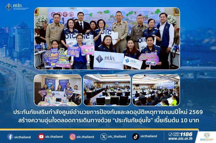 ประกันภัยเสริมกำลังศูนย์อำนวยการป้องกันและลดอุบัติเหตุทางถนนปีใหม่ 2569 สร้างความอุ่นใจตลอดการเดินทางด้วย “ประกันภัยอุ่นใจ” เบี้ยเริ่มต้น 10 บาท