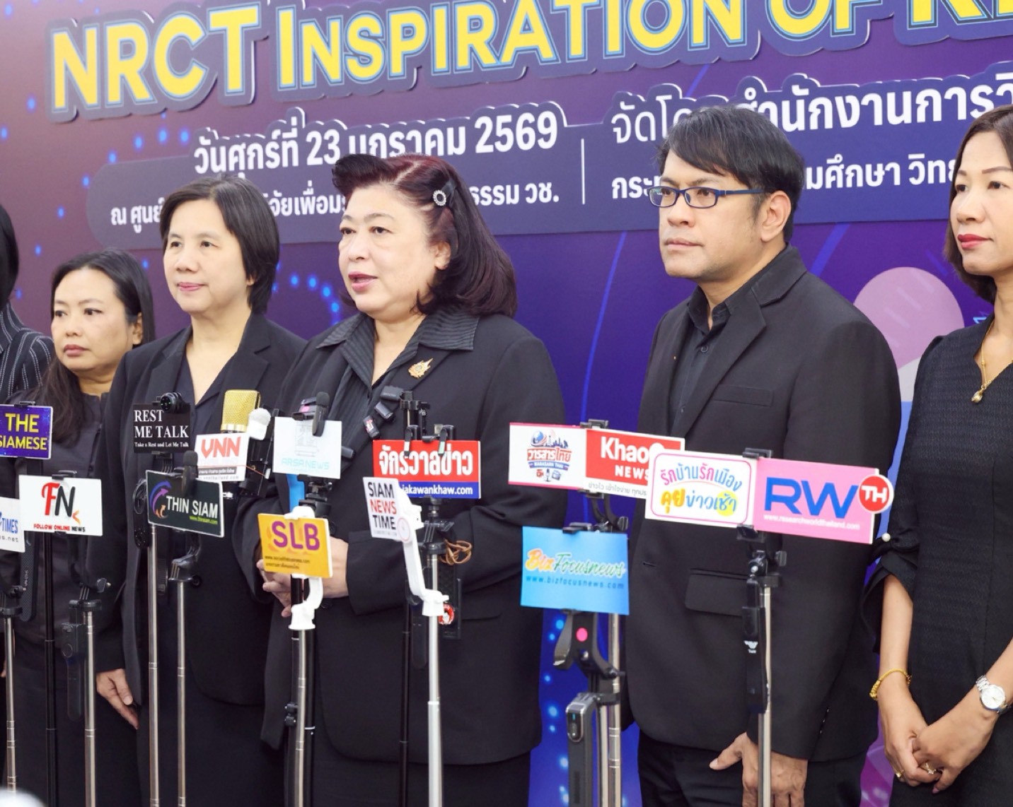 วันที่ 23 มกราคม 2569 สำนักงานการวิจัยแห่งชาติ(วช.) กระทรวงการอุดมศึกษา วิทยาศาสตร์ วิจัยและนวัตกรรม จัดการแถลงข่าว “NRCT Inspiration of Research” กลยุทธ์การพัฒนากำลังคน ผลักดันงานวิจัยสู่การใช้ประโยชน์ ปี 2569 โดย ดร.วิภารัตน์ ดีอ่อง ผู้อำนวยการสำนักงานการวิจัยแห่งชาติ ณ ศูนย์ส่งเสริมการวิจัยเพื่อมรดกทางวัฒนธรรม อาคาร วช. 8 สำนักงานการวิจัยแห่งชาติ